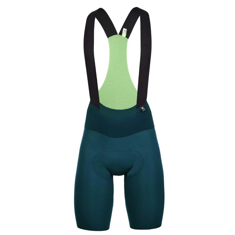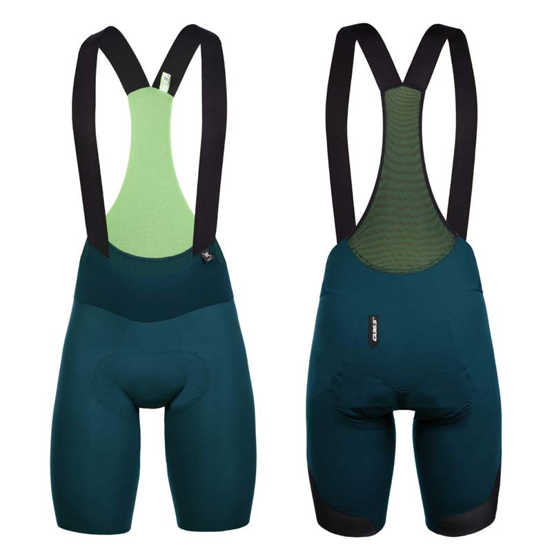 プロ向けに開発されたサーマルビブショーツ。5~15℃の間で温かさを保ち、雨からも身体を守ります。、重さは180g。サロペットウルフ2.0は、ライド中の快適性を高めるために、全く新しい独自のパターンを採用し、アップグレード、拡張されたバージョンです。こういった秋冬向けのビブショーツは冬のライドでますます人気が高まり、ニッカーよりも今や人気となっています。