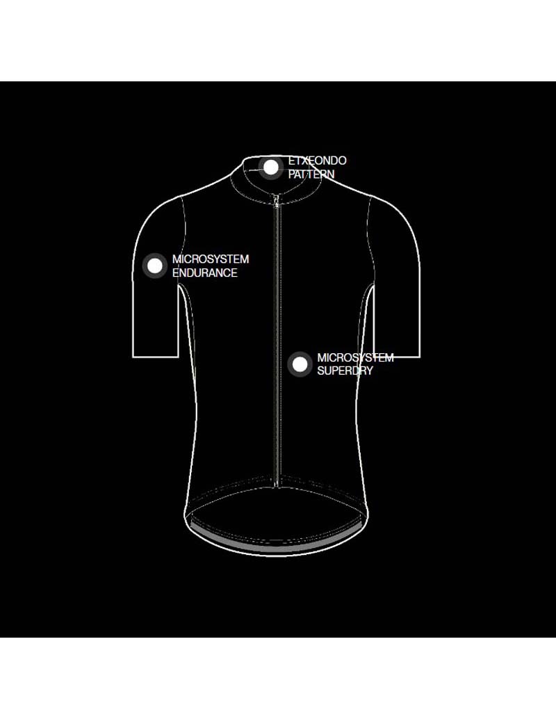 BikoはMicrosystemテクノロジーを使用して製造されています。フロントとリアパネルには、通気性と速乾性に優れたマイクロ・パーフォレーションのスーパードライ・ファブリックを使用。マイクロシステム・エンデュランスから切り出された袖は、非常に伸縮性に富み、まるで素肌のようなフィット感を提供します。その結果、快適性、汎用性、通気性が得られます。ウエストには滑り止めが付いており、何キロ走ってもジャージがずれないようになっています。伸縮性のある3つのポケットは、携帯電話、スペア、食料を収納するのに十分な容量があります。
