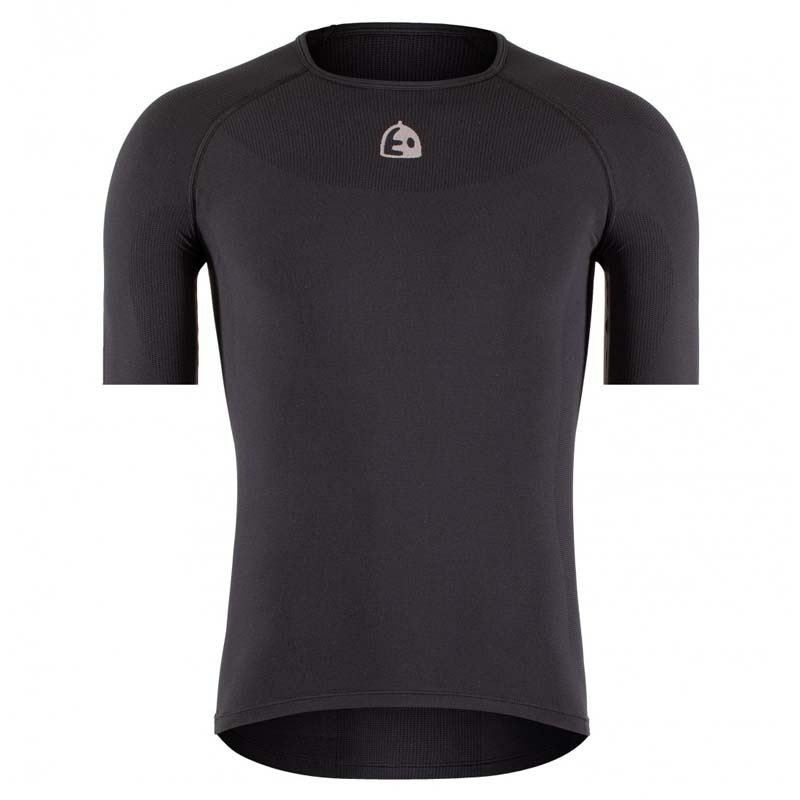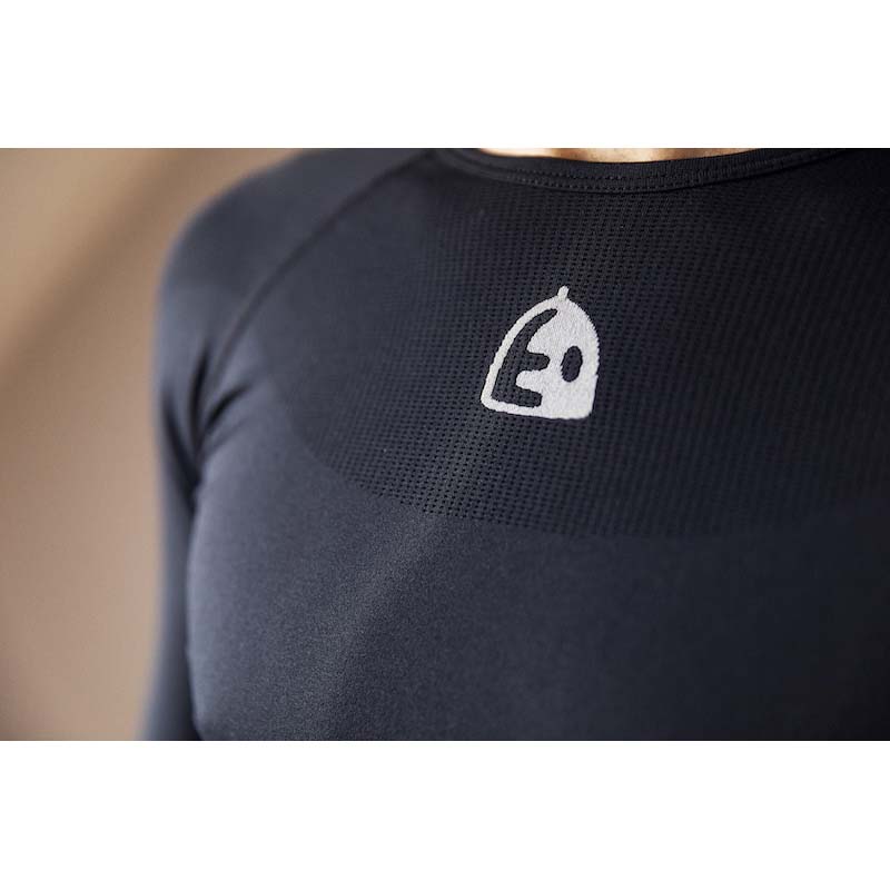 サーモクールファブリックを使用したユニセックスのハイテクウェア。このベースレイヤーは円形パターンで織られているため縫い目がなく、驚くほどの伸縮性と最適なボディ・フィットを実現。中空のサーモクールファイバーが体温を調節し、内側の熱を維持します。