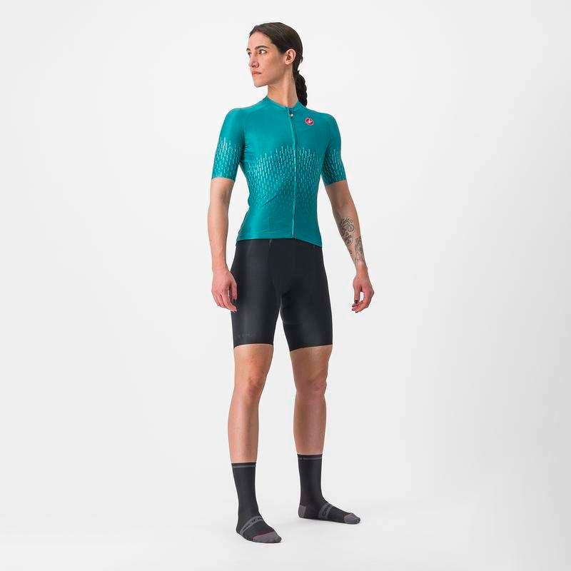 コンマ何秒の速さを追い求めて。 一瞬の速さが勝負を分ける。そんなギリギリの世界線で生きるトッププロに、限りなく大きなエアロアドバンテージを提供するために生まれたジャージです。 カステリがエアロジャージの開発を進めたのが2006年でした。その当時はタイムトライアル用のスーツにだけ空気抵抗を抑えるエアロ設計がされていて、ジャージを含むその他の製品にはエアロという概念はなく、あるのは通気性を追い求める姿勢だけ。当時はポリエステルで作られたガバガバのTシャツでもツール・ド・フランスで勝てるほどこだわりがなかったのです。 そこでカステリはエアロジャージの開発を進め、一瞬の速さを求める姿勢がやがて大きな差となって現れ始めたのです。 プロ選手に瞬く間に広がり、アップデートされる度にエアロダイナミクスとフィット感、そしてデザインが進化しています。 今作のAERO PRO W JERSEYは、サイクルウェアにおいて完璧な三拍子を有しています。デザイン、スピード、そして快適性。性能によるアドバンテージと心理的な感情の高まりは、大きなモチベーションを生み出す原動力となるはず。
