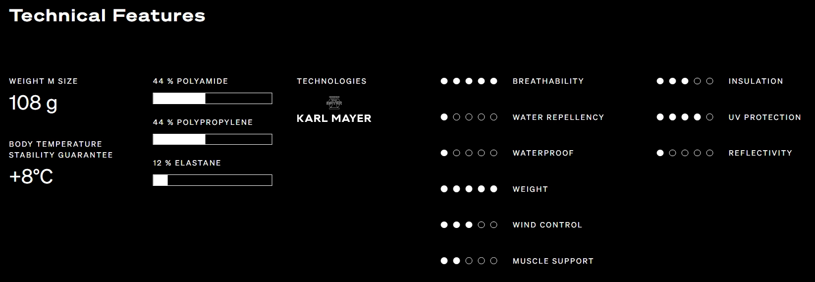 すべてのシームレスマシンが同じことが出来るとは限りません。『Q36.5』は、シームレスの商品を作るのにカールマイヤー社の織り機を使用しています。洗練されたボディマッピングに沿ったウエアの設計を基に、高度な技術により肩をつなげる2本以外の縫い目を完全に無くすことができました。カールマイヤー社の織り機は、最高のシームレス技術を表現することの出来る織り機です。