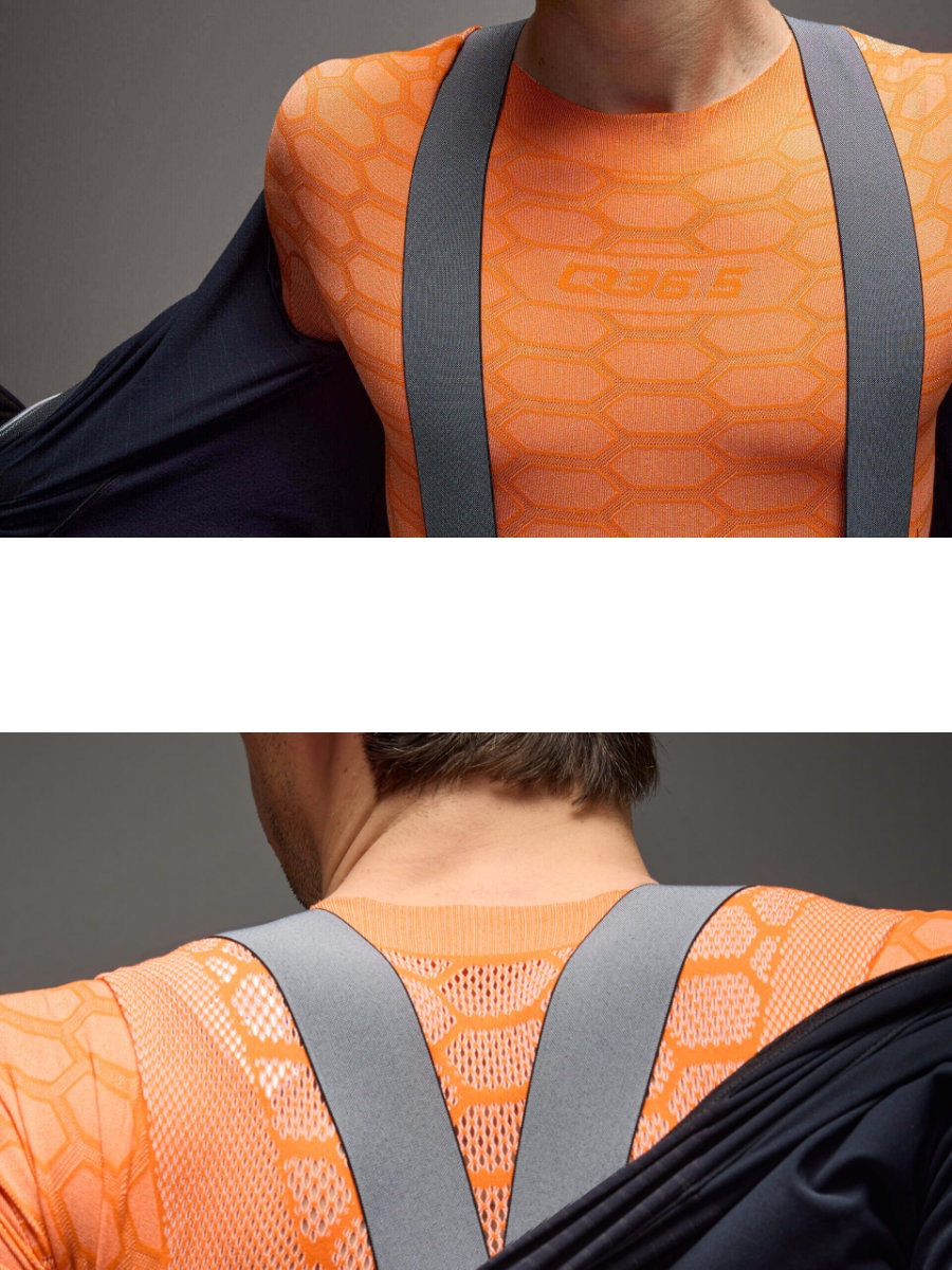 この高度な製造方法により、第二の皮膚のようなフィット感を持つベースレイヤーが誕生しました。異なる素材構造と密度を組み合わせることで、体の発汗ゾーンに適応。編み目のハニカムパターンは、異なる密度とオープンメッシュセクションを活用し、体の熱要求と発汗率をマッピングします。これにより、最小限の素材で最大限の快適性を実現します。春先や秋の終わりに最適なベースレイヤーであり、断熱性と湿度管理のバランスを調整し、あらゆる強度のライドで快適さを確保します。