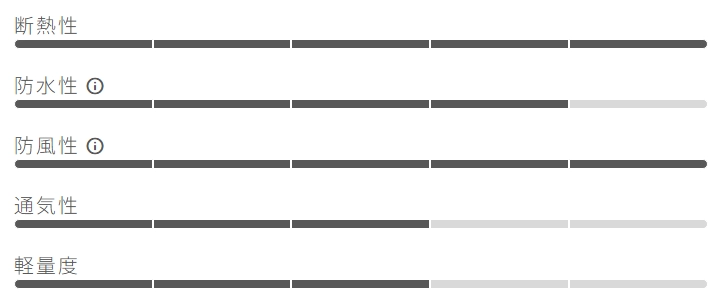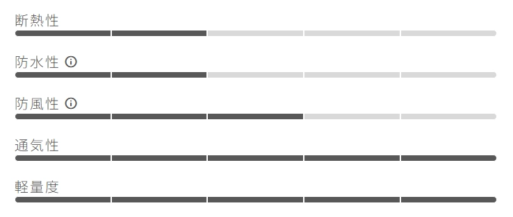 カステリの透湿性の高い製品には耐久撥水加工(DWR)が施されています。アウター生地が水分を含まない状態を保つことで、製品が本来の透湿性を発揮。仮にアウター生地が水分を含み始めた場合、撥水性能が低下するだけでなく、透湿性が最大70%低下します。