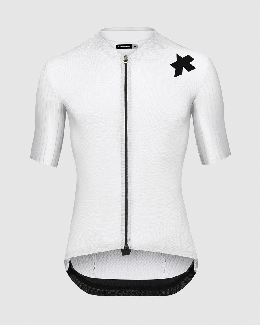 ASSOSのワールドツアー・ショートスリーブ・レースジャージは、腕全体がより空力的にフィットするように再設計され、全体的に冷却性と通気性が向上し、全体的に軽量化されている。