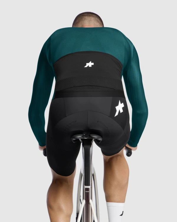 open 3D ニットの miniCheck Tex がフロントに高い通気性・伸縮性・UPF 25 を提供し、ASSOS らしい質感を生み出します。ポケットは Stabilizer V11 のリアパネルで支えられ、強力な冷却性と通気性を備え、UPF 15 と非常に軽量なため、その下には日焼け止めの使用を推奨しています。このパネルは荷物による沈み込みや揺れを防ぎ、安定性を確保します。ロングスリーブには新しい 550CX ワープニットテキスタイルを採用し、UPF 35 の保護性能と、筋肉を包み込むバイストレッチフィット、そしてエアロ特性を備えています。